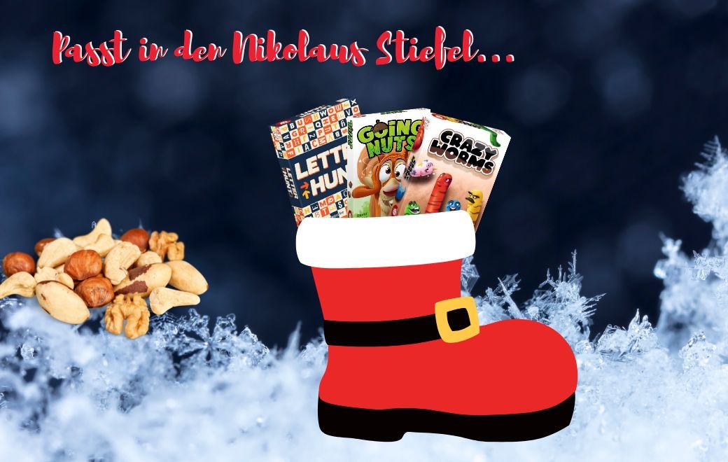 Sehr beliebt sind kleine Spiele, die gut in Stiefel oder ein kleines Säckchen passen und ideal sind für eine spielerische Auszeit in der Familie oder im Freundeskreis. Nachfolgend eine Auswahl an neuen, passenden Spielen von Piatnik: