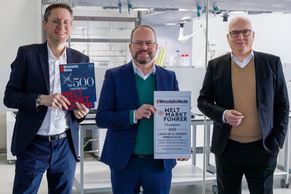 LAUDA DR. R. WOBSER GMBH & CO. KG has been named the global market leader in the field of “constant temperature equipment and systems for precise temperature control” for the tenth time in a row. The renowned “Index of World Market Leaders,” compiled under the direction of Prof. Dr. Christoph Müller from the University of St. Gallen, Switzerland, forms the basis for the annual awards presented by the leading business magazine “WirtschaftsWoche.”