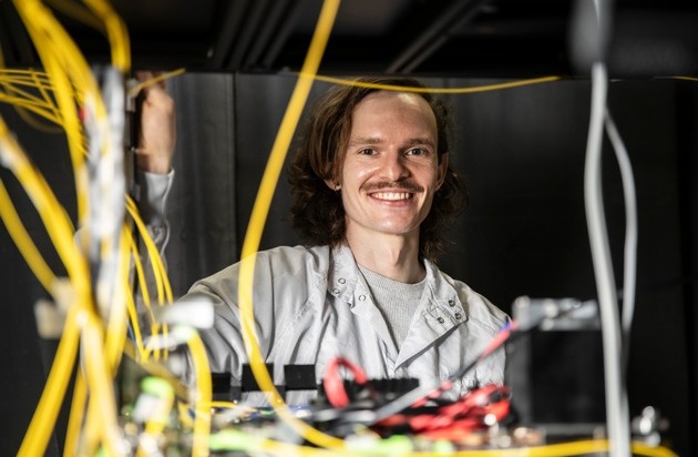 In his dissertation, Spiess developed a protocol for the high-precision synchronization of clocks in quantum communication networks. What makes this approach unique is that it uses individual photons—particles of light that are already used in these networks for information transmission—as clock signals. Additional synchronization patterns, separate lasers, or highly stable and expensive atomic clocks are not required for this. At the same time, the method achieves greater accuracy and stability than previous technologies. Christopher Spiess has now been awarded the first place of the Hugo Geiger Prize for his research.
