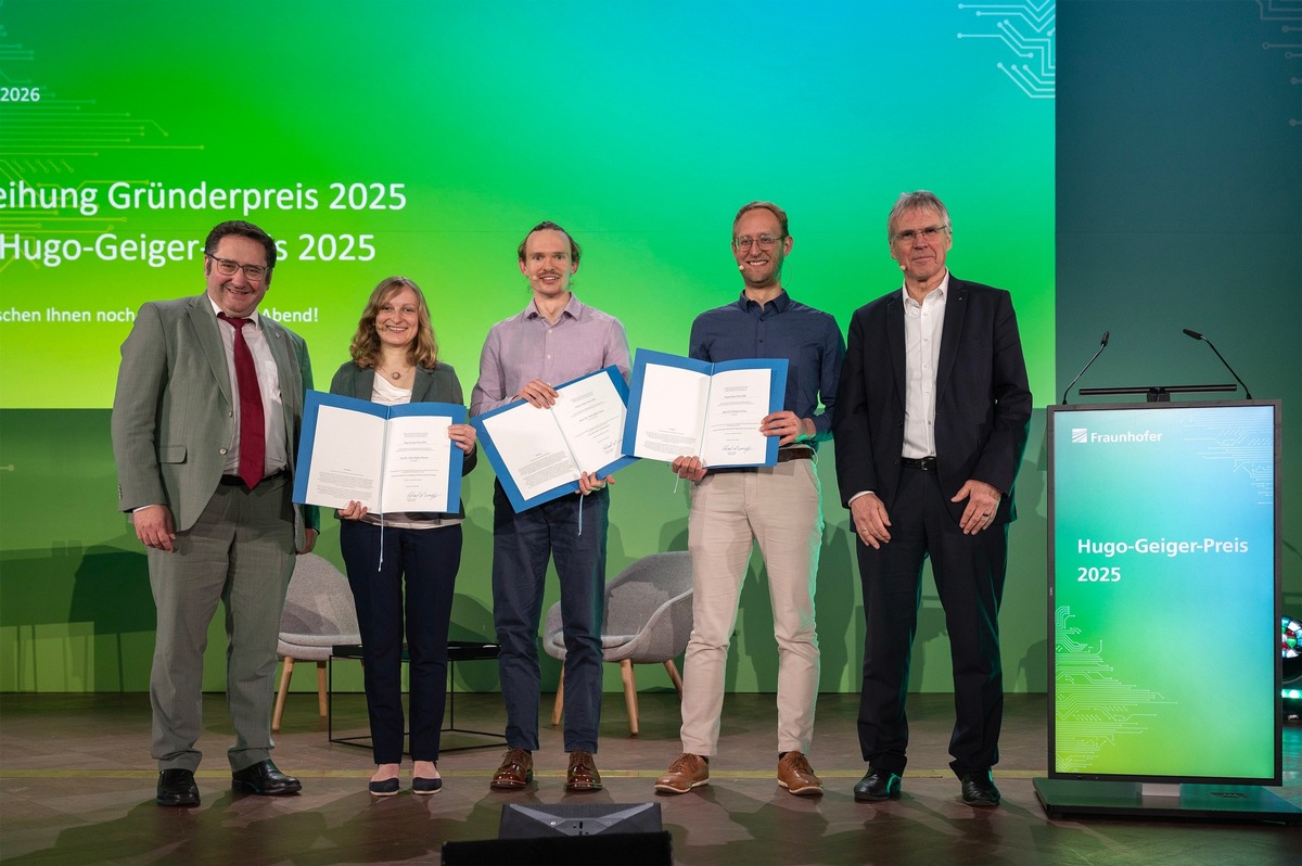 The Hugo Geiger Prize is jointly awarded by the Bavarian Ministry of Economic Affairs, Regional Development, and Energy (StMWi) and the Fraunhofer Gesellschaft to recognize innovative solutions developed by doctoral candidates in close cooperation with a Fraunhofer Institute. Submissions are evaluated by a jury comprising representatives from research and industry. The evaluation criteria include scientific quality, economic relevance, novelty, and the interdisciplinary nature of the approaches. The award was presented to the winners on March 18 by Bavarian State Secretary for Economic Affairs Tobias Gotthardt during the Fraunhofer Symposium “Netzwert”.