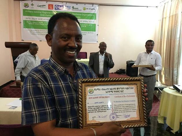 Mit der Auszeichnung "Best Performance Award" wurde vor Kurzem die Arbeit der Stiftung Menschen für Menschen - Karlheinz Böhms Äthiopienhilfe vom Amhara National Regional State Bureau Finance & Economy Cooperation anerkannt. Basierend auf Feldbesuchen wurden insgesamt vier Hilfsorganisationen für ihre herausragenden Leistungen ausgezeichnet. Der Preis wurde in Bahir Dar, der Hauptstadt der Region Amhara, während eines Partnerschaftsforums, an der über 100 Organisationen teilnahmen, an Addisu Asefa, Plan & Program Coordinator von Menschen für Menschen, überreicht.