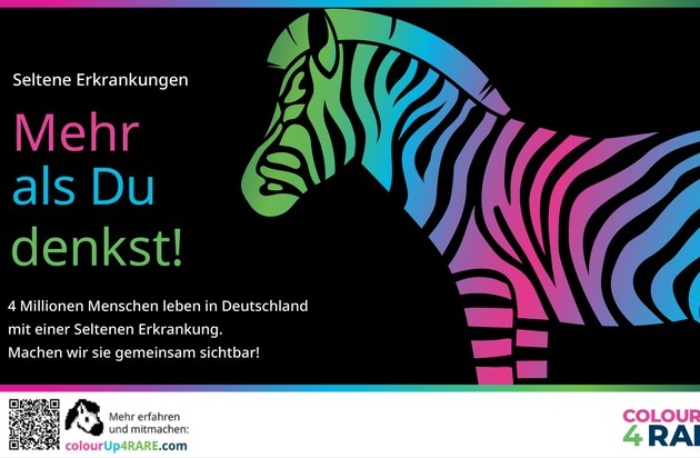 Zugleich startet am 21. Februar die digitale #ZebraChallenge: Im Online-Spiel sammeln Teilnehmende Punkte und erfahren dabei spielerisch Wissenswertes über Seltene Erkrankungen. Jede Teilnahme zahlt auf einen Gesamtscore ein, der bis zum Ende des Aktionszeitraums am 7. März erfasst wird. Mit dem Erreichen von 100.000 Spielescores ist eine Spende zur Unterstützung von Menschen mit Seltenen Erkrankungen verbunden. Mehr erfahren und mitmachen: www.colourup4rare.com/spiel.