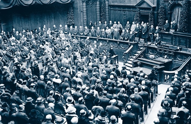 Die erste offizielle Feierstunde fand 1922 im Deutschen Reichstag in Berlin statt. Der damalige Reichstagspräsident und SPD-Abgeordnete Paul Löbe hielt eine im In- und Ausland vielbeachtete Rede, denn er stellte einer Gegenwart voller Feindseligkeiten den Gedanken an Versöhnung und Verständigung gegenüber. "... Leiden zu lindern, Wunden zu heilen, aber auch Tote zu ehren, Verlorene zu beklagen, bedeutet Abkehr vom Hass, bedeutet Hinkehr zur Liebe, und unsere Welt hat die Liebe not..."