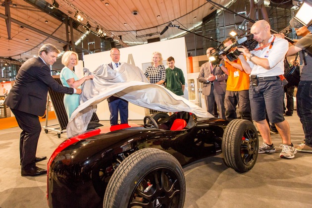 Bundesministerin Wanka und Ministerpräsident Weil enthüllen Kleinrennwagen auf der IdeenExpo