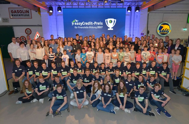 Nürnberg, 17. Mai 2017. easyCredit, der Ratenkreditexperte der Genossenschaftlichen FinanzGruppe Volksbanken Raiffeisenbanken, hat im Rahmen einer Festveranstaltung bereits zum siebten Mal den "Preis für Finanzielle Bildung" verliehen. Eine hochkarätig besetzte Fachjury durfte in diesem Jahr aus 369 Finanzbildungsprojekten wählen, die von den Genossenschaftsbanken in Deutschland und Österreich sowie erstmals auch direkt von Schulen, Vereinen und Verbänden ins Rennen geschickt wurden. Anhand vorher definierter Kriterien, wie beispielsweise Nachhaltigkeit, Multiplizierbarkeit und Aufmerksamkeit, bewerten die Juroren die einzelnen Projekte. Die TOP-5-Projekte der Jury-Wertung wurden hierbei mit je 5.000 Euro dotiert.