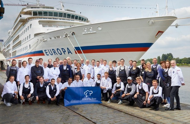 Mehr als 30 Akteure der Spitzengastronomie kamen bei "EUROPAs Beste" am 24. Juni auf dem Lido Deck zusammen und begeisterten die Gäste mit besonderen kulinarischen Kreationen. 13 europäische Spitzenköche, Winzer, Chocolatiers, Pâtissiers und Fromagers machten das Gourmetevent zu einem wahren Genussfeuerwerk. Unter ihnen auch TV-Moderator Günther Jauch, der die Weine seines Weinguts von Othegraven präsentierte. Der Küchenchef von MS EUROPA, Tillman Fischer, hieß die Gourmetelite gemeinsam mit Corporate Chef Michael Hoffmann an Bord des Luxusschiffes von Hapag-Lloyd Cruises willkommen.