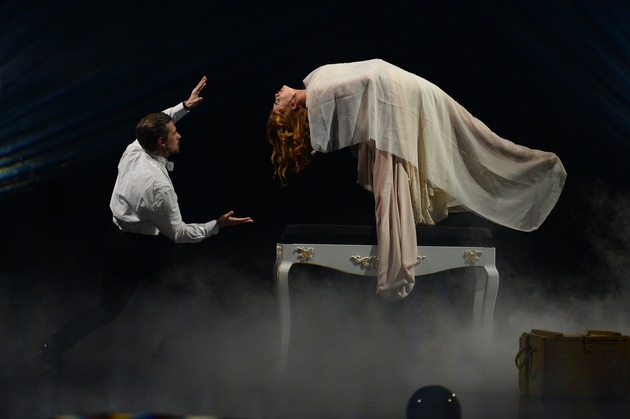 Große Illusion oder magische Show-Sensation? Klaas Heufer-Umlauf (32) verzaubert in seiner Rolle als Großillusionist David Flame die Zuschauer mit seiner ersten Bühnenshow. In "The David Flame Show" lässt er Assistentin Palina Rojinski (31) meterhoch in die Lüfte schweben, hebt am Ende selbst ab und verblüfft mit einer Entfesselung im Holzsarg. "The David Flame Show" ist eine von acht Shows in der Show: Joko Winterscheidt (37) und Klaas Heufer-Umlauf suchen in "DIE BESTE SHOW DER WELT" (Samstag, 30. April, 20:15 Uhr, auf ProSieben) nach der Zauberformel für beste Unterhaltung.