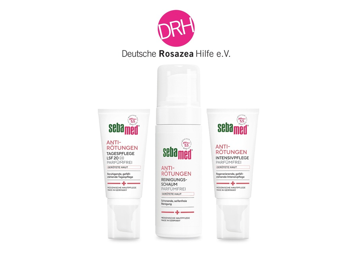 Die medizinische Systempflege von sebamed trägt ab sofort das Logo der Deutschen Rosazea Hilfe e.V.