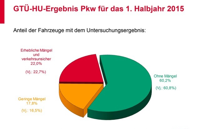 GTÜ-Mängelreport 1. Halbjahr 2015: Fast jeder vierte Pkw fällt bei der Hauptuntersuchung durch