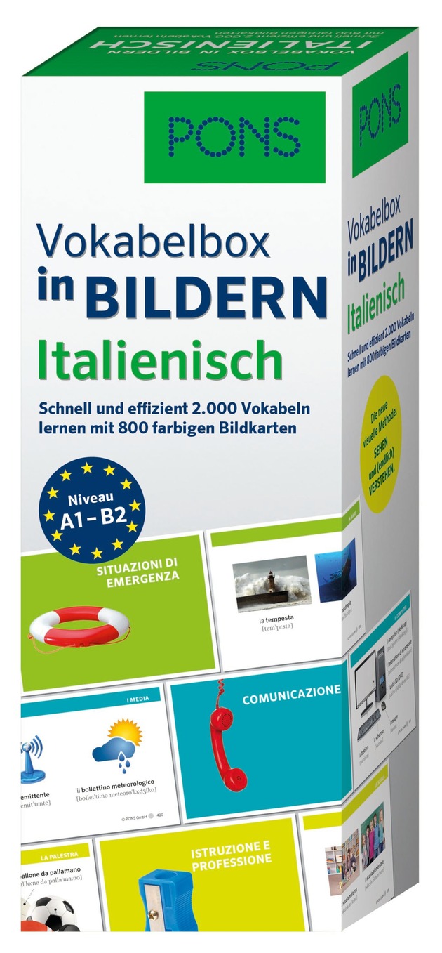 Die "Vokabelboxen in Bildern" sind ab sofort zu 14,99 Euro im Buchhandel oder bei PONS erhältlich.