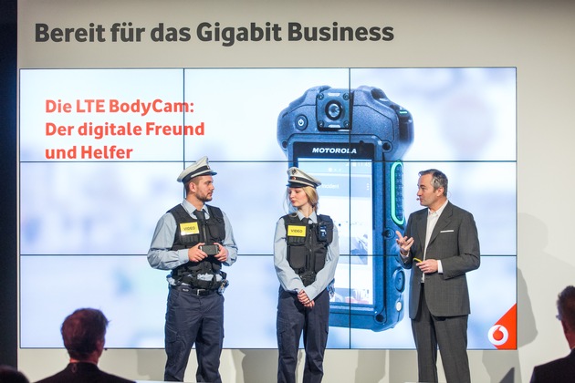 Auf der CeBIT 2016 zeigt Vodafone Deutschlandchef Hannes Ametsreiter den digitalen Freund und Helfer - und wie vernetzte BodyCams für Polizisten Deutschland sicherer machen können. Zusammen mit Motorola Solutions demonstriert Vodafone die erste Live-Übertragung von 'Bodycams' über das LTE Mobilfunknetz in Deutschland. Mit der Kamera, die Polizeibeamte direkt am Körper tragen, lassen sich auf Knopfdruck Videos aus der Perspektive der Einsatzkräfte in Echtzeit an die Einsatzzentrale übermitteln. Die erhält so einen schnellen und umfassenden Überblick über die Situation am Einsatzort und kann die Kräfte dort besser und flexibler koordinieren. Zudem können die Bilder auch an andere Einsatzkräfte übertragen oder beweissicher gespeichert werden. Insbesondere bei Großveranstaltungen wie Fußballspielen, Festivals oder Demonstrationen lassen sich kritische Situationen mit den vernetzten Bodycams schneller analysieren, Straftaten gegenüber Beamten oder auch polizeiliche Übergriffe besser aufklären oder sogar verhindern.