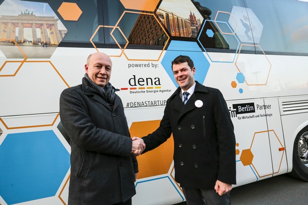 Am Mittwoch früh um 7.30 Uhr in Berlin ging es los: Der Startup-Bus der Deutschen Energie-Agentur (dena) brach mit Jungunternehmerinnen und Jungunternehmern auf zur europäischen Leitmesse der Energiewirtschaft, der E-world in Essen. Im Gepäck: ihre Erfolg versprechenden Geschäftsideen für die Energiewende und jede Menge Gesprächswünsche mit Unternehmen, die ebenfalls auf der E-world zu Gast sind. Den Startschuss gab der Chef der Berliner Senatskanzlei Björn Böhning vor dem Roten Rathaus.