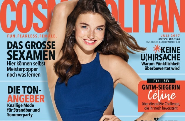 COSMOPOLITAN ist seit der ersten Staffel Medienpartner von "Germany's next Topmodel" und zeigt jedes Jahr die Gewinnerin auf dem Cover. Die COSMOPOLITAN-Ausgabe mit Céline auf dem Titel erscheint am 1. Juni. Damit reiht sich die GNTM-Gewinnerin in eine Liste starker "Fun.Fearless.Female."-Frauen wie Cara Delevigne, Zooey Deschanel und Ruby Rose ein. Sie alle waren in diesem Jahr bereits Cover-Girl der deutschen COSMOPOLITAN.