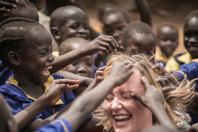 Es ist ein Foto der Begegnung, der Nähe und der gemeinsamen Freude: Das nominierte Bild "In der Mitte" entstand im März im Südsudan, einem Land, in dem jeder vierte Bewohner auf der Flucht ist vor Bürgerkrieg, Hunger und Hoffnungslosigkeit. "Deshalb haben wir dieses Bild für den Wettbewerb gewählt. Es zeigt spontanes Lachen zwischen Einheimischen und Helfern", sagt Manuela Roßbach, geschäftsführender Vorstand von "Aktion Deutschland Hilft". "Ein Anblick, den Medien sonst kaum aus Krisengebieten zeigen."
