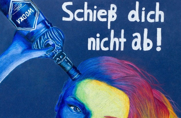 Das Kunstwerk der Bundessiegerin Hannah Hauswald aus Lüneburg in Niedersachsen zeigt einen bunten Mädchenkopf mit blauer Wodkaflasche. Dazu der Spruch: "Schieß Dich nicht ab!" "Die Flasche steht symbolisch für eine Pistole, welche sich das Mädchen an die Schläfe setzt, als ob sie einen Selbstmord begehen würde", erklärt die 14-Jährige ihr erfolgreiches Plakat. "Mein Plakat zeigt, wie der Alkoholkonsum Lebensfreude und Hoffnung verdrängen kann."
