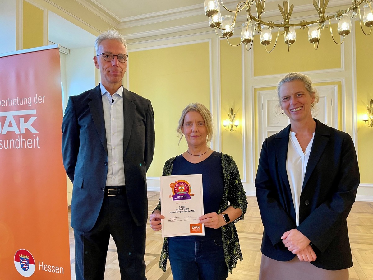 Die auf Platz drei gewählte Vorreiterregion „Sepsis Main-Taunus-Kreis“ fördert die Aufklärung über Blutvergiftung in Schulen, Unternehmen, und Behörden. „Unser Ziel ist es, die frühzeitige Erkennung und Behandlung von Sepsis im Main-Taunus-Kreis entscheidend zu verbessern. Durch die enge Zusammenarbeit zwischen Kliniken, Rettungsdiensten und Arztpraxen optimieren wir Diagnose- und Therapieprozesse. Doch vor allem ist es uns wichtig, auch die Bevölkerung für die Gefahren der Sepsis zu sensibilisieren“, so die Projektverantwortliche Marion Pfeiffer. Vorreiterregion MTK – Gemeinsam gegen Sepsis | Sepsis MTK