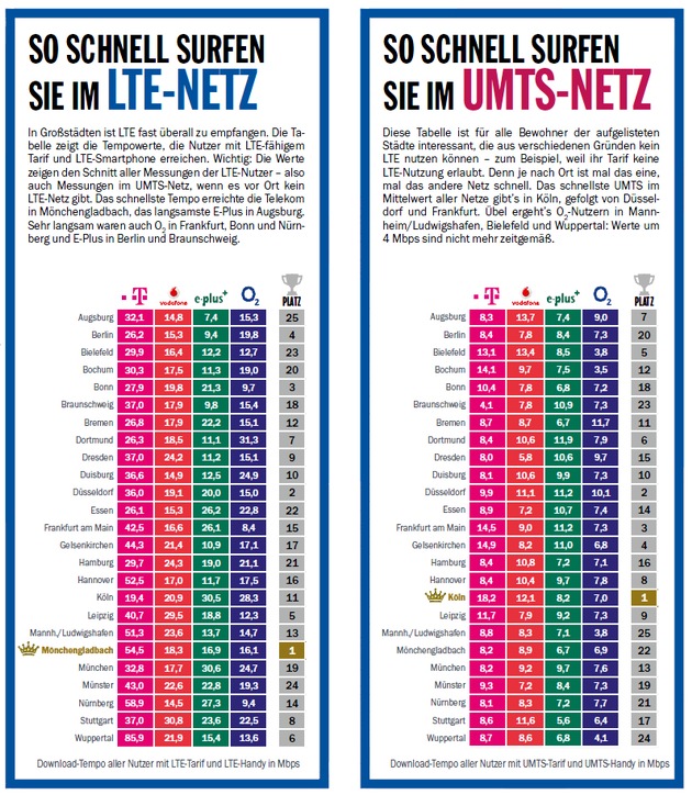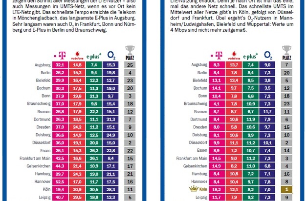 "Die Leser können auf unserer Tempo-Karte genau nachvollziehen, welcher Mobilfunkanbieter für ihre Region am besten geeignet ist", so Christian Just. "Die Telekom ist insgesamt Sieger in Sachen Geschwindigkeit, aber vielerorts sind auch andere Netze schnell genug und billiger." Besonderer Service in der neuesten Ausgabe: Für die 25 größten Städte Deutschlands gibt es eine genaue Analyse zum Mobilfunktempo für jedes Netz.