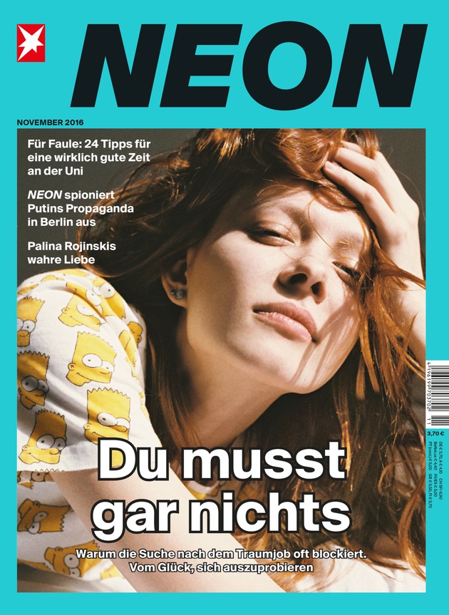 Das vollständige Interview ist in der aktuellen Ausgabe von NEON (Ausgabe 11/2016) zu finden, die ab 10. Oktober 2016 zum Preis von 3,70 Euro im Handel erhältlich ist.
