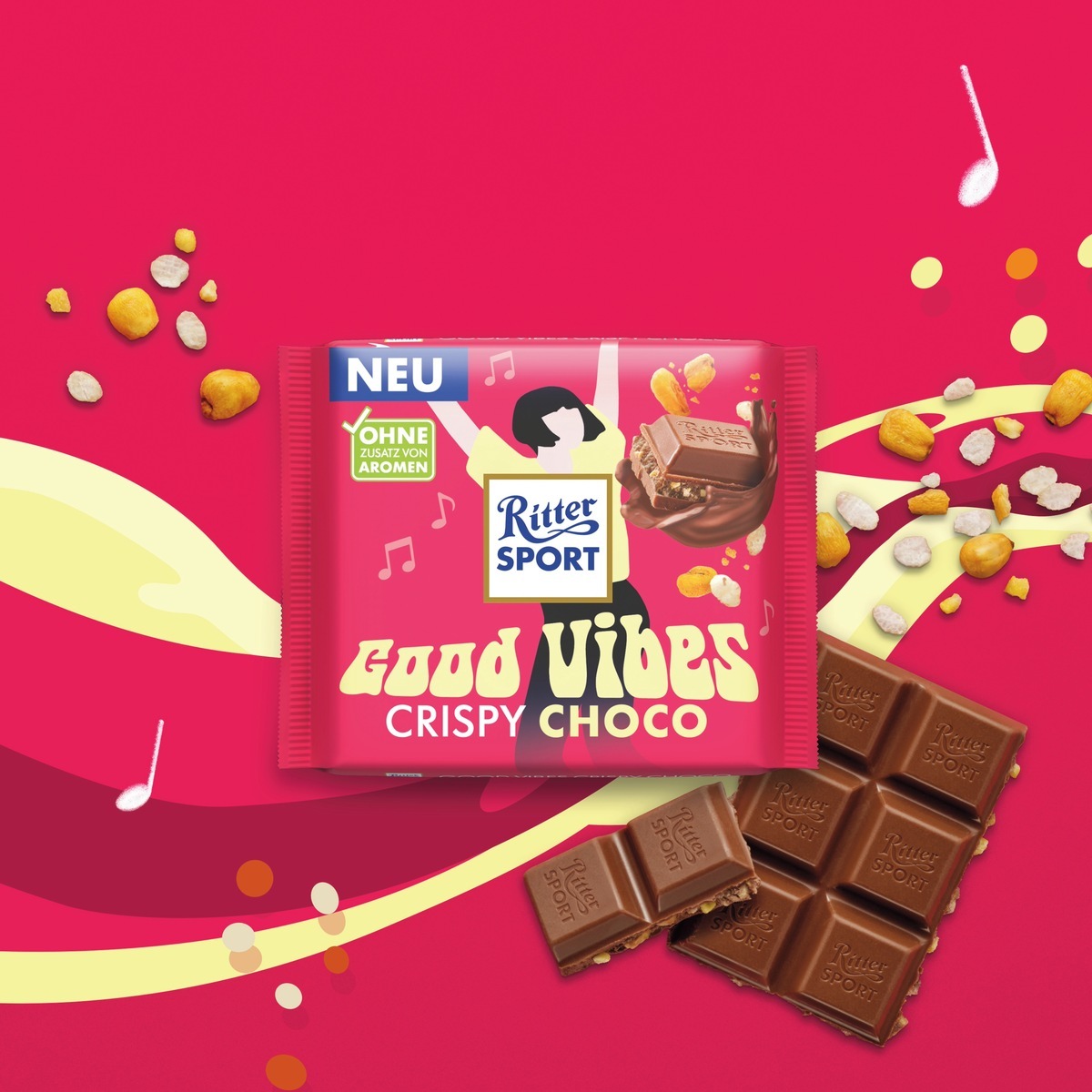 Als Gute-Laune-Garantie und für die kleine süße Auszeit vom Alltag bringt Ritter Sport im Januar die Tasty Vibes Edition mit der neuen Good Vibes Crispy Choco sowie den beliebten Sorten Groovy Crunchy Brezel und Funky White Lemon in den Handel.