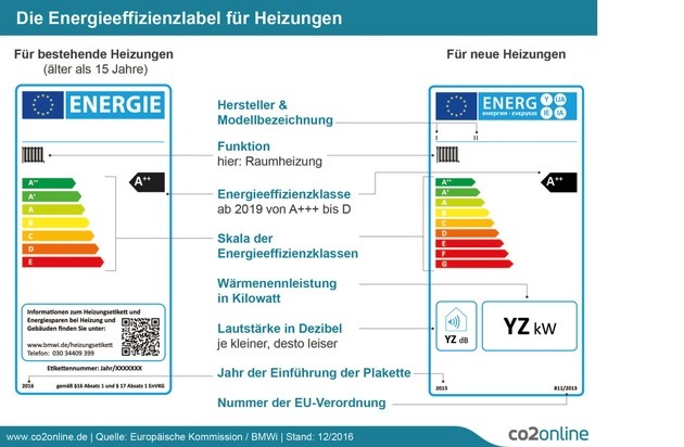 Die beigefügte Infografik kann mit Quellenangabe ("www.co2online.de") honorarfrei zur redaktionellen Berichterstattung verwendet werden. Es zeigt die Energielabel für alte und neue Heizungen. Weiteres druckfähiges Bildmaterial gibt es auf http://www.co2online.de/presse.