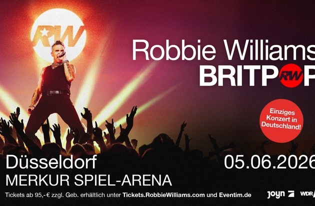 Robbie Williams spielt sein einziges Deutschland-Konzert 2026 in Düsseldorf