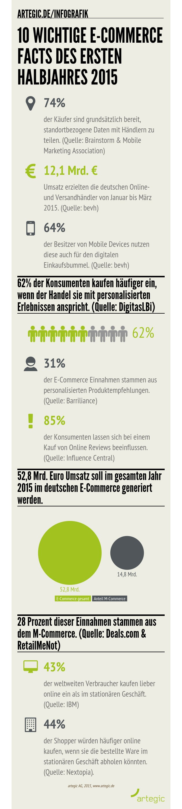 Das erste Halbjahr 2015 ist vorüber. In diesem Zeitraum hat sich auch im E-Commerce wieder einiges getan. Wir haben einige E-Commerce Facts aus Studien, Analysen und Marktbeobachtungen des letzten Halbjahres in einer übersichtlichen Infografik zusammengetragen.