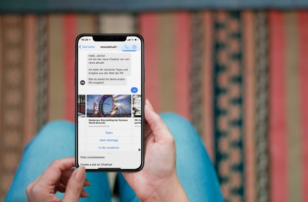 MIKHAIL: Momentan ist er noch relativ simpel. Man kann den Chat Bot ansprechen und er gibt einem Tipps und Insights zu PR-Themen, die wir auf der PR-Academy von news aktuell zur Verfügung stellen. Zusätzlich empfiehlt er Stories aus unserem Blog TREIBSTOFF.