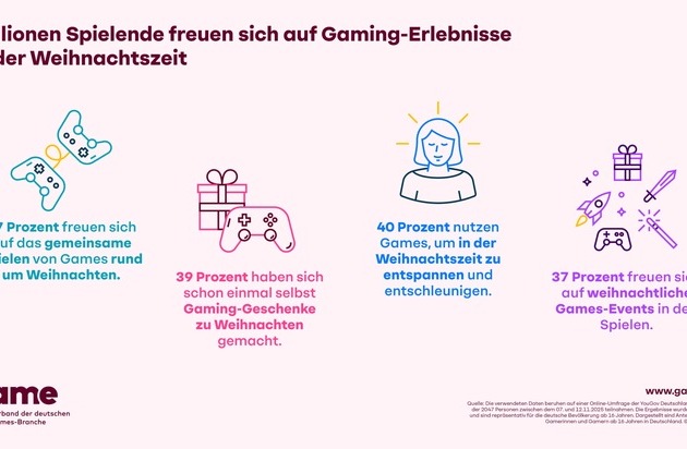 - Für 31 Prozent der Spielenden gehört Gaming mit Familie oder Freunden fest zur Weihnachtszeit