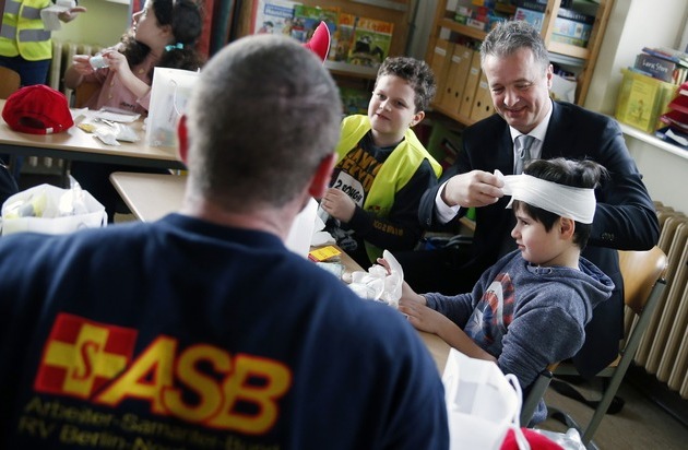 Erste Hilfe rettet Leben und ist kinderleicht zu lernen. Dabei gilt aber auch: Wer früh und kontinuierlich Erste Hilfe trainiert, leistet sie im Notfall selbstverständlicher. "Daher gehört für den ASB die Erste Hilfe bereits in Grundschulen auf den Stundenplan", sagte ASB-Bundesgeschäftsführer Ulrich Bauch am Donnerstag in der Paul-Moor-Schule in Berlin. Dort stellte der ASB seine neue Erste-Hilfe-Box für Grundschüler vor. Mit dem Methodenordner können pädagogische Fachkräfte Kindern zwischen sechs und zehn Jahren die Erste Hilfe altersgerecht vermitteln.