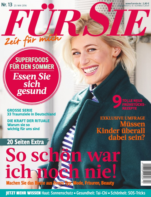 Die ganze Umfrage rund um das Thema "Müssen Kinder überall dabei sein?" lesen Sie in der aktuellen Ausgabe 13/16 der FÜR SIE, die ab dem 23. Mai im Handel erhältlich ist.