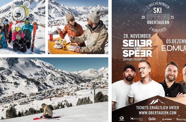 Den Beginn der Wintersaison feiert Obertauern in diesem Jahr an gleich zwei Wochenenden. Den Startschuss geben am 28. November die österreichischen Austropop-Stars Seiler & Speer, die ab 20:30 Uhr Hits wie „Ham kummst“ und „Für immer“ live vor verschneiter Bergkulisse spielen (Einlass: 19:30 Uhr).