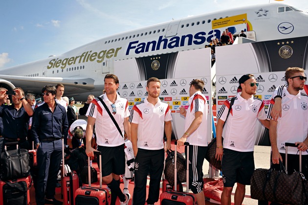Mit der als "Fanhansa-Siegerflieger" bemalten Boeing B747-8 kommt die Lufthansa kurz vor dem Start der Fußball-Europameisterschaft mit genau der Maschine zur ILA 2016, die die deutsche Fußball-Nationalmannschaft nach dem Gewinn der Fußballweltmeisterschaft 2014 aus Rio de Janeiro nach Hause brachte. Dabei drehte die Maschine eine ungewöhnliche Ehrenrunde über der Berliner Fanmeile vor dem Brandenburger Tor mit über einer Million Fans. Der Siegerflieger landet morgens mit der Flugnummer LH9988 planmäßig um 9:35 Uhr auf dem ILA-Gelände und wird während der Bodenzeit interessierten Besuchern durch geführte Besichtigungen zugänglich sein. Am späten Nachmittag um 18:10 Uhr fliegt der Jumbo wieder mit Kurs nach Frankfurt zurück (LH9989). Das Flugzeug mit der Registrierung D-ABYI und ist auf den Namen "Potsdam" getauft. Die Deutsche Lufthansa führt insgesamt 19 Boeing 747-8 in ihrer Flotte, das längste Passagierflugzeug der Welt.