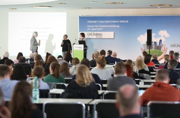 Zwei Jahre nach der erfolgreichen Premiere trafen sich am 27. April 2017 über 100 Teilnehmer im Rahmen von "Zukunft Stadt@GRÜNBAU BERLIN" auf dem Berliner Messegelände. Das Forum für Stadtentwicklung informierte über eine breite Themenpalette: von Gestaltungsvarianten inklusiver Spielplätze sowie Grün- und Freiräume in der Stadt der Zukunft über nachhaltige Holzbeschaffung und Zertifizierungsmöglichkeiten bis hin zur Vernetzung von Regenwassermanagement und Beleuchtung im städtischen Raum. taz-Redakteur und Buchautor Uwe Rada moderierte das Event, das die Messe Berlin in Zusammenarbeit mit den Fachzeitschriften Garten+Landschaft und Playground@Landscape durchführte.