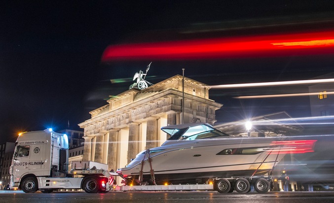 Wenn Schwertransporte Richtung Messegelände unterwegs sind, ist es Zeit für die BOOT & FUN BERLIN. Hier im Bild eine Sea Ray 320 Sundancer. Die Berliner Wassersportmesse wird am Mittwochabend (22. November) mit der GALA DER BOOTE eröffnet. Von Donnerstag bis Sonntag (23. bis 26. November) stellen über 700 Aussteller aus 16 Ländern in zwölf Hallen ihre Angebote aus. Die diesjährige Ausgabe präsentiert mit mehr als 600 Booten die größte Marken- und Modellvielfalt und zeigt im Zentrum von Europas größtem Binnen-Wassersportrevier erfüllbare Träume. Das Spektrum reicht vom spektakulären Segelboot über den neuen Trend Sloepen bis zur modernen Motoryacht sowie stilvollen klassischen Yachten. Erweitert wird das Angebot mit einer eigenen Halle für Hausboote, einem Gebrauchtbootmarkt und einer Halle für Ausrüstung und Zubehör. Ebenfalls vertreten sind Funsportarten wie Wakeboarden, Surfen, Tauchen und Stand Up Paddling. Für die naturverbundenen Besucher hat die BOOT & FUN BERLIN Kanus, Kajaks, Camping und Angeln zu bieten. Tickets sind im Vorverkauf ab 11 Euro erhältlich. Dieses und weitere Fotos finden Sie in druckfähiger Qualität hier zum Download http://www.messe-berlin.de/Presse/Fotogalerie/