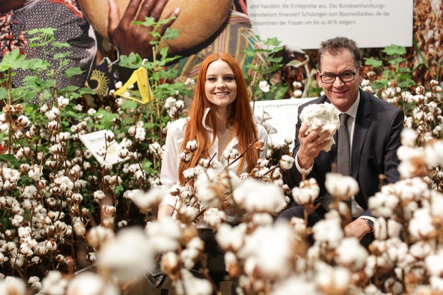"Nachhaltige Textilien - vom Baumwollfeld bis zum Bügel": Unter diesem Motto informiert das Bundesentwicklungsministerium (BMZ), auf der Grünen Woche. Entwicklungsminister Gerd Müller: "Wenn wir in Deutschland so billig wie möglich unsere Kleidung kaufen, zahlen Menschen anderswo einen hohen Preis: 16-Stunden-Schichten, Akkordarbeit für 70 Euro im Monat, Kinderarbeit. Vom freien zum fairen Handel muss auch für unsere Kleidung gelten. Hier setzt das 2014 gegründete Textilbündnis für nachhaltige Textilien an - konkret mit über 1.500 Verbesserungsschritten pro Jahr." 2017 wurden für alle Mitglieder verbindliche Ziele und Fristen beschlossen. So kommt die sogenannte ZDHC-Liste zum Tragen, mit der 160 giftige Chemikalien in der Produktion vermieden werden. Bis 2020 muss der Anteil nachhaltiger Baumwolle in der gesamten Produktion auf 35 Prozent steigen. Minister Müller und Barbara Meier, BMZ-Textilbotschafterin und frühere "Germany's Next Topmodel"-Gewinnerin, stellten innovative Ansätze aus dem Textilsektor vor. Meier sagte: "Einfach genau hinsehen und beim Shoppen nachfragen: Engagiert sich der Hersteller oder die Modemarke für faire Arbeitsbedingungen? Trägt das Kleidungsstück ein Sozial- oder Umweltsiegel?" Weltweit arbeiten mehr als 60 Millionen Menschen in der Textil- und Bekleidungsbranche, die meisten davon in Entwicklungs- und Schwellenländern und häufig unter menschenunwürdigen Bedingungen. Das Bündnis für nachhaltige Textilien hat über 150 Mitglieder - darunter zahlreiche bekannte Marken wie Adidas, H&M, Hugo Boss, C&A und Tchibo sowie die Zivilgesellschaft.