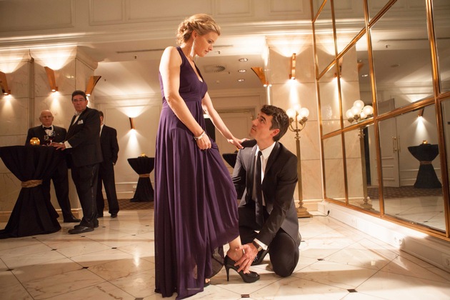 25. Februar 2016: Einmal Prinzessin sein! Dieser Mädchentraum erfüllt sich für Mira Bartuschek in der neuen SAT.1-Romantic-Comedy "Was kostet die Liebe? - Ein Großstadtmärchen". In der Rolle der unscheinbaren Praktikantin Nora muss sie spontan als Escortgirl für ihre Cousine Emily (Birte Glang) einspringen - und plötzlich liegt dem einstigen Mauerblümchen die Männerwelt zu Füßen. Selbst ihr Chef Max (Alexander Khuon) erkennt Nora nicht als aufgestyltes Escortgirl. Hauptdarstellerin Mira Bartuschek hat ein klares Rezept für eine positive Ausstrahlung: "Eine Frau sollte vor allem zu sich selbst stehen und mit sich und ihrem Äußeren im Reinen sein. Das Leben besteht aber aus mehr, als sich immer nur darzustellen. Das ewige Kreisen um sich selbst, das Äußere und vor allem die Konzentration darauf, wie andere einen wahrnehmen, halte ich für ungesund und auf Dauer für sehr anstrengend." Ihre Filmpartnerin Birte Glang ergänzt: "Attraktiv wirkt die innere Schönheit. Alles andere ist 'aufmalbar' - sei es durch Schminke oder Styling." Die Schauspielerin, die zwischen Berlin, London und Los Angeles pendelt, ist begeistert von ihrer Rolle als quirliges Escortgirl Emily: "Ich fand es spannend, eine laute, untypische Deutsche zu spielen, die mit frechen Sprüchen nicht geizt. Dabei musste ich aber den Balanceakt schaffen, dass diese Rolle nicht 'nervt' und dass man Emily für ihren eigenwilligen 'Beruf' nicht abstempelt." Inhalt: Von heute auf morgen steht Noras (Mira Bartuschek) Cousine Emily (Birte Glang) mit Sack, Pack und Mops vor der Tür. Emily hat einen Job als Escort-Girl in der Stadt und braucht dringend eine Unterkunft. Ihr glamouröses Leben ist das komplette Gegenteil von Noras, die als "ewige Praktikantin" in einer Werbeagentur arbeitet. Und als wenn das nicht genug wäre, fängt Emily sich auch noch eine Fischvergiftung ein - und Nora muss inkognito für sie einspringen. Bei ihrem Debüt als "Ausgeh-Dame" trifft sie prompt den charmanten Millionär Max (Alexander Khuon), der sich sofort in Nora verliebt und sie kennenlernen möchte. Doch sie kann ihrer Cousine zuliebe ihre Identität nicht verraten - und als Max sich mit seinem besten Freund Freddy (Marc Ben Puch) auf die Suche nach ihr macht, stoßen die beiden auf Emilys Fährte ... Dabei hat Max Nora eigentlich direkt vor seiner Nase: Er ist ihr neuer Chef in der Werbeagentur. Allerdings hat er keine Zeit, sich seine Praktikantin näher anzusehen und erkennt sie am helllichten Tag einfach nicht ...