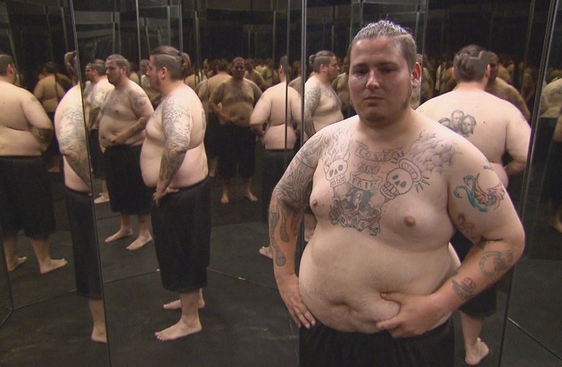 "So werden wir uns nie wiedersehen! Jedenfalls nicht so fett wie jetzt!" "The Biggest Loser"-Kandidat Sascha (aus Fernwald/Hessen) ist bis in die Grundfesten erschüttert. In der vierten Folge der SAT.1-Abnehmshow (Sonntag, 24.4.2016, 17:45 Uhr) betritt der 28-Jährige sein persönliches Horrorkabinett: den "Raum der Wahrheit". In dem komplett verspiegelten Zimmer wird er mit dem optischen Ausmaß seines massiven Übergewichts (Startgewicht: 169,9 kg) konfrontiert: "Das macht sehr betroffen. So habe ich mich selbst noch nie gesehen", muss sich der Augenoptiker und Hörgeräteakustiker aufgewühlt selbst eingestehen.