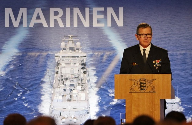Ratzmann schlug auch den Bogen zur persönlichen Verbundenheit seiner Heimat mit einem brandneuen Marineschiff: "Mit der Patenschaft des Landes mit der Fregatte 'Baden-Württemberg' und der Taufpatin Gerlinde Kretschmann haben wir im Dezember ein ganz besonders enges Band mit der Marine geknüpft."