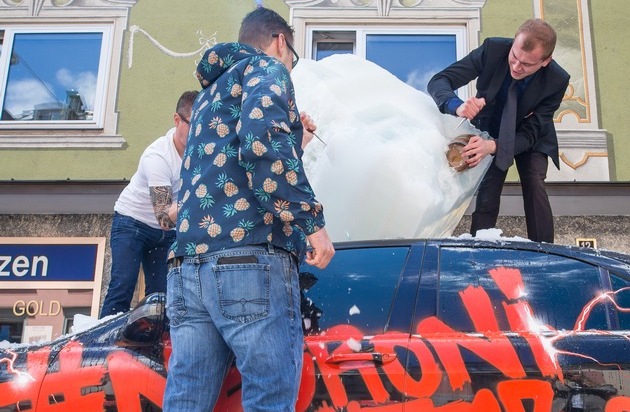 Heute am Mittwoch, den 07.06. Mittags staunten die Münchner nicht schlecht. Ein überdimensionaler Eiswürfel schlug in ein Auto vor der Robinson's Bar am Gärtnerplatz ein. Top Bartender und Redakteure erkannten die Chance, stürmten die Szene und zerschlugen mit Eispickeln den 920kg schweren Eiswürfel. Sie brachten dabei drei mit Negroni gefüllte Eichenfässer zum Vorschein. Schnell entstand aus der gemeinschaftlichen Situation eine spontane Feier unter den Bartendern, Redakteuren und Passanten. Es gab 4 Wochen fassgereifte Negronis - frisch und gut gekühlt aus den Fässern - und Negroni Eiscreme aus dem neuen mobilen Eiswagen von Ballabeni. Und das alles für einen guten Zweck!