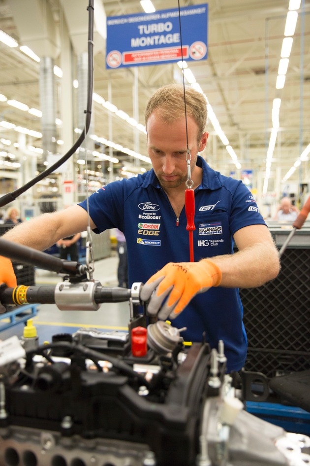 - Ford GT-Pilot Stefan Mücke baut in der 1,0-Liter-EcoBoost-Produktion von Ford in Köln an Jubiläumsmotor mit.