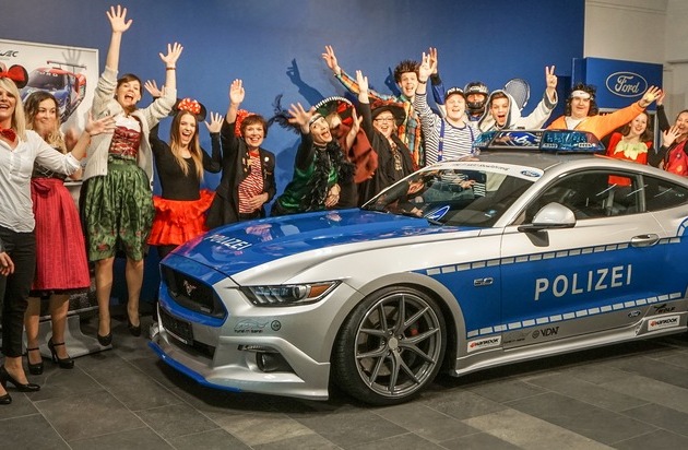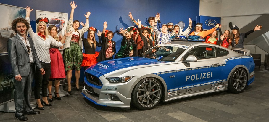 Mit 421 Pferdestärken verstärkt ein Ford Mustang im Polizei-Ornat den Kölner Rosenmontagszug (FOTO)