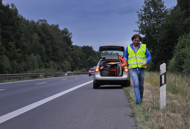 Das Aufstellen auf Landstraßen und Autobahnen ist ein nicht ganz ungefährliches Unterfangen. Zum eigenen Schutz läuft man ganz weit rechts, am äußersten Fahrbahnrand - noch besser: das Laufen hinter der Leitplanke. Wer das Warndreieck aufgeklappt vor sich her trägt, verbessert zusätzlich seine Sichtbarkeit.
