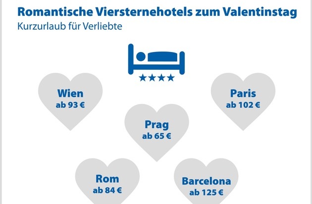 Valentinstag: Romantische Viersternehotels bereits ab 65 Euro pro Nacht