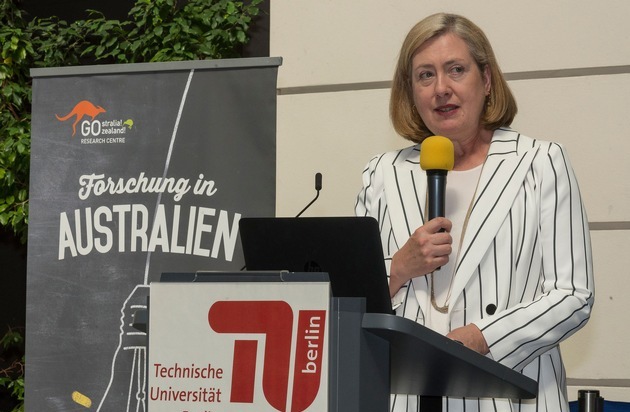 Prominente Unterstützung hatte die Veranstaltung durch australische Botschafterin I.E. Lynette Wood und die Vizepräsidentin der TU Berlin, Prof. Dr. Angela Ittel, die gemeinsam alle Gäste begrüßten. In ihrer Rede betonte die Botschafterin die Besonderheit dieses ersten Australian Research Days. Sie hob hervor, dass dieser Tag nicht nur ein Beispiel für die schon sehr guten Beziehungen zwischen Deutschland und Australien ist, sondern darüber hinaus die Zusammenarbeit zwischen australischen und deutschen Universitäten weiter vertieft und Türen für die nächste Generation von Forscherinnen und Forschern öffnet.