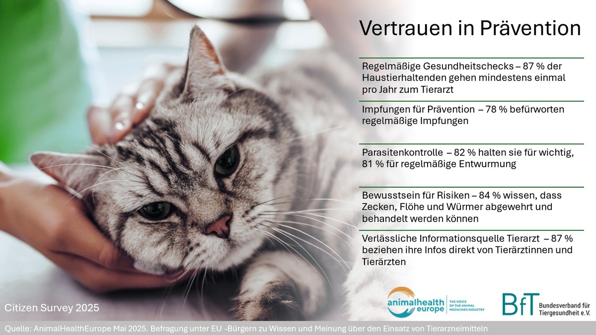 Die Umfrageergebnisse unterstreichen die zentrale Rolle der Tiergesundheit im One-Health-Kontext, dem Zusammenspiel von Tier-, Mensch- und Umweltgesundheit. Impfungen und Parasitenkontrolle bei Haustieren tragen nicht nur zum Wohl der