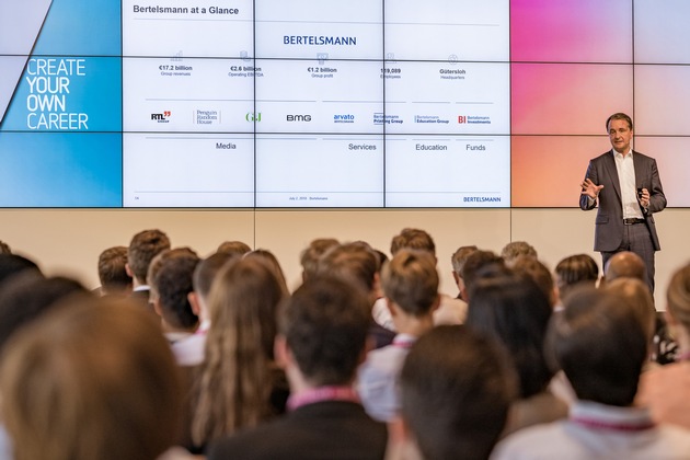 Immanuel Hermreck, Personalvorstand von Bertelsmann: "So vielfältig wie diesmal war das Teilnehmerfeld von 'Talent Meets Bertelsmann' noch nie. Ich freue mich sehr, denn dies spiegelt die Internationalität unseres Konzerns wider. Die neuen Perspektiven und kreativen Ideen der jungen Leute sind für uns jedes Mal sehr beeindruckend und bereichernd. Alle Teilnehmer haben das Potenzial, eines Tages als Führungskraft Verantwortung in einem Unternehmen zu übernehmen - idealerweise auch bei Bertelsmann. Wer die Welt der Medien, Dienstleistungen oder Bildung unternehmerisch gestalten möchte, findet bei uns exzellente Karriereaussichten. In allen drei Bereichen spielt dabei die Analyse großer Datenmengen eine immer wichtigere Rolle, deshalb steht dieses Thema im Mittelpunkt unserer Veranstaltung in diesem Jahr."