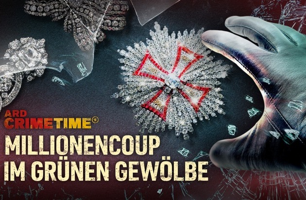 ARD Crime Time ist eine Gemeinschaftsproduktion von MDR, HR, SWR, NDR, WDR und BR und präsentiert jeden Monat eine hochwertig produzierte Film-Staffel, in der besondere Mord- und andere Kriminalfälle detailliert aufgearbeitet werden. Die neue Staffel zum spektakulären Einbruch in das Dresdner Grüne Gewölbe ist eine MDR-Produktion und wird am 29. Oktober 2025 in der ARD Mediathek veröffentlicht (3 x 30 Minuten). Der gleichnamige Podcast ist ab 15. November in der ARD Audiothek abrufbar; das MDR-Fernsehen zeigt den Film am 28. Dezember, um 22.00 Uhr in seinem Programm.