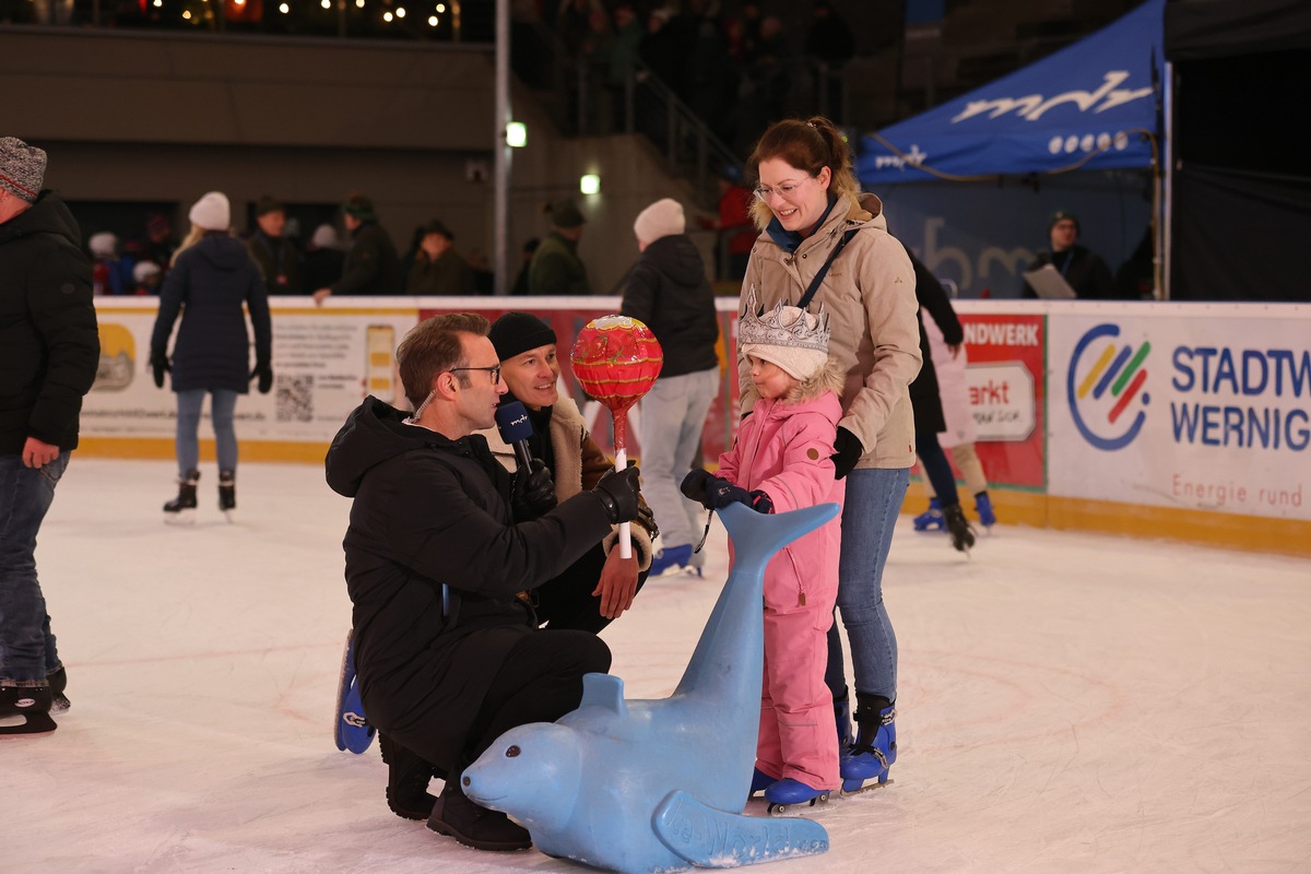 Ob auf Schlittschuhen, auf der Tribüne oder vor den Kameras – die Stimmung war ausgelassen, herzlich und festlich. Schierke stand an diesem Freitag (5. Dezember 2025) ganz im Zeichen von „Hol dir deine Show!“. Alle die nicht dabei sein konnten, können den MDR-Show-Tag aus Schierke ab sofort in der ARD Mediathek abrufen. Die nächste und letzte Show für dieses Jahr findet am 19. Dezember im Erzgebirge statt.