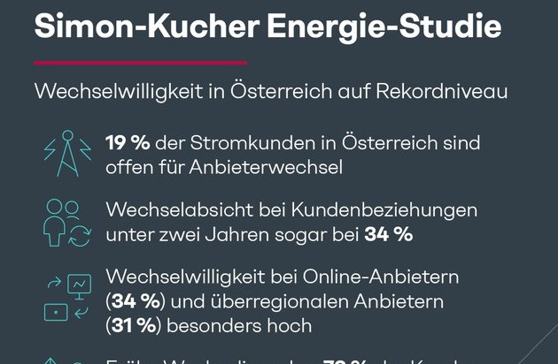 Energie-Studie: Wechselwilligkeit auf Rekordniveau - Rund jeder fünfte Stromkunde in Österreich denkt über Anbieterwechsel nach