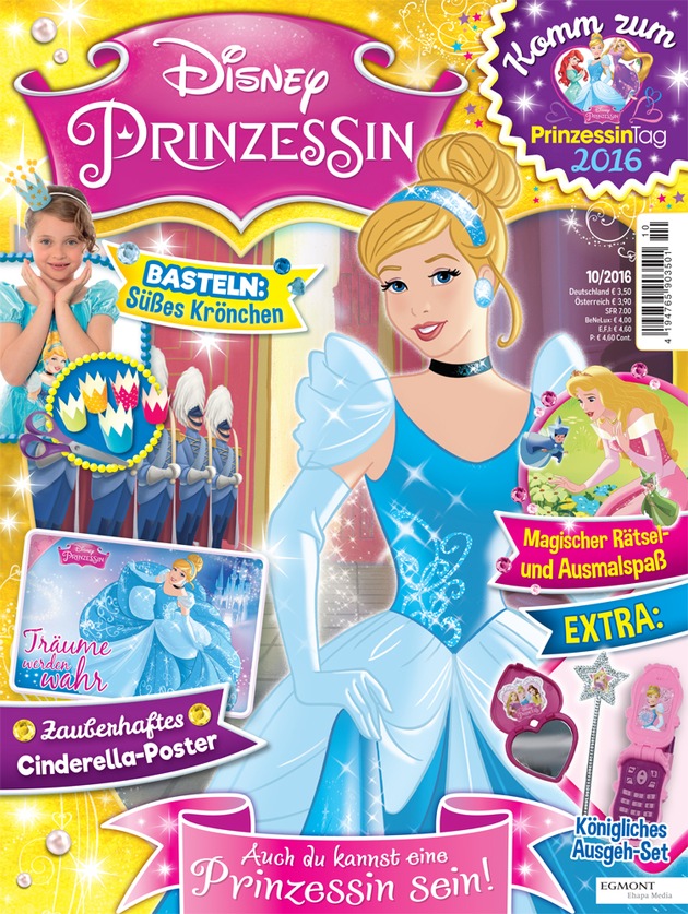 Das Prinzessin-Magazin erscheint vierwöchentlich und richtet sich an Leserinnen zwischen 3 und 6 Jahren. Im Fokus stehen hier die 11 beliebtesten Disney-Prinzessinnen, wie etwa Cinderella, Belle, Arielle, Rapunzel und Co. In zauberhaften Geschichten und tollen Activity- sowie Ausmal-Seiten erfahren die Leserinnen: Auch du kannst eine Prinzessin sein!